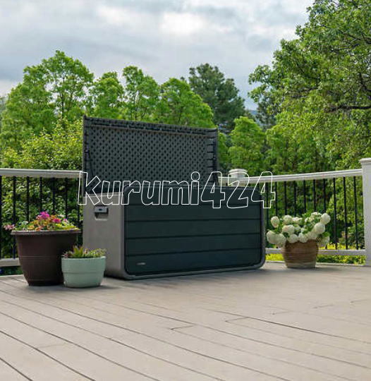 プラスチック製でおしゃれな木目調のパネルは紫外線、雨水にも強く屋外にも最適!大型でベンチとしても使えます!ダンパー付きで開閉も楽々!
