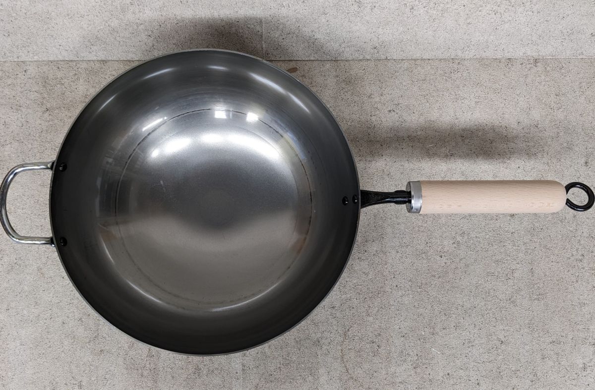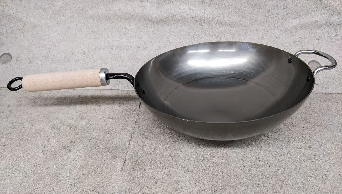 ff996■【未使用保管品】日本製 ワカバト 厚板いため鍋 ステンレス 木柄ハンドル 中華鍋 27cm 使いやすいサイズ/80