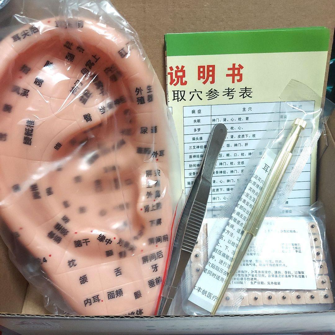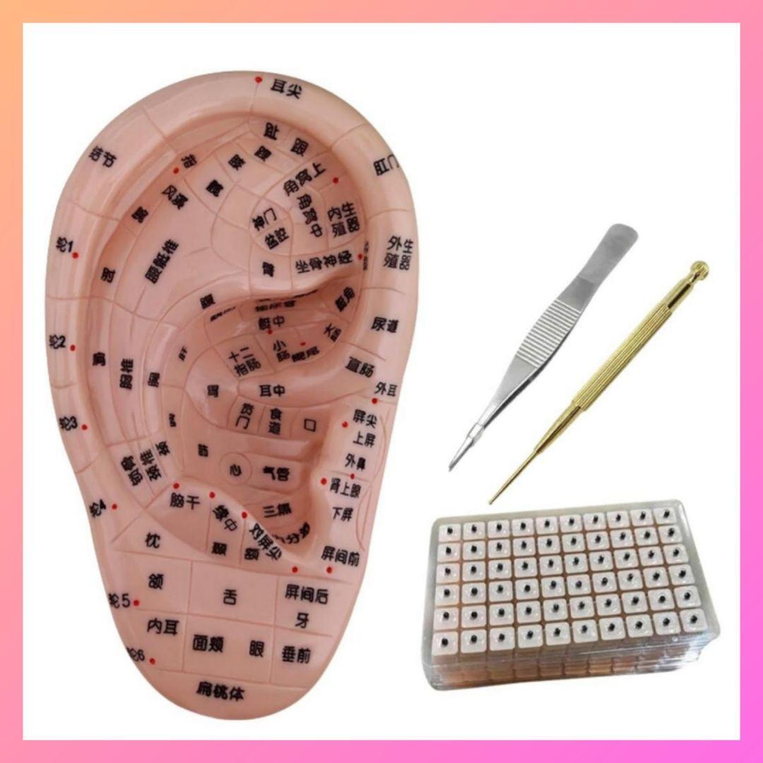 耳に存在する自律神経ツボの位置を分かりやすく示し、ツボ療法や鍼療法で自己ケアで調子を整えたい方に最適です。銅でできたツボ刺激スティックと、600個のチタンビーズ、ピンセットが含めています。