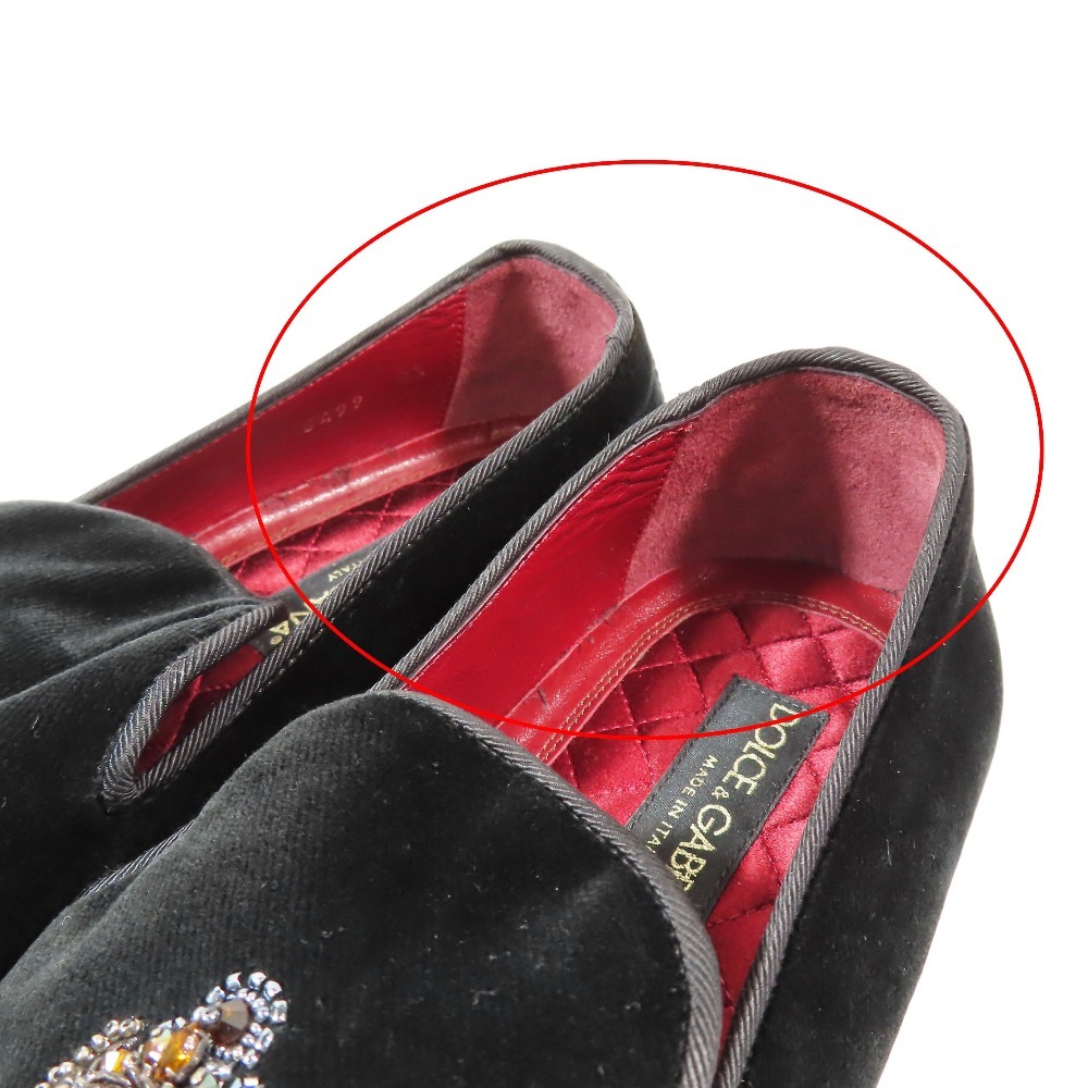 未使用 DOLCE&GABBANA ドルチェ&ガッバーナ ベロア スリッポン ローファー クロス ビーズ ラインストーン シューズ 8.5 ブラック