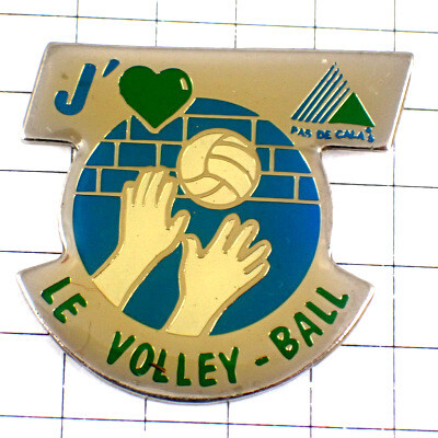 ピンバッジ・バレーボール大好きグリーン緑のハート白い手とボール球◆フランス限定ピンズ◆レアなヴィンテージものピンバッチ