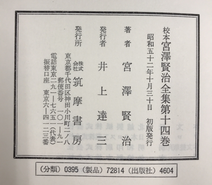 Product name: 校本 宮沢賢治全集(1~14巻/全15冊セット(13巻のみ上巻下巻))著:宮沢賢治 筑摩書房 昭和52年昭和53年