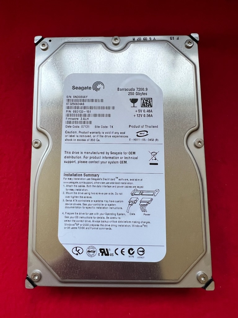 不良返金保証 シーゲート Seagate☆3.5インチHDD(ハードディスク)☆250GB SATA300☆ST3250824AS (y46)