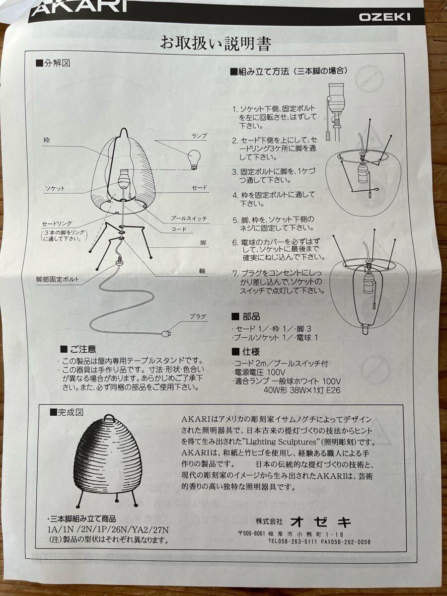 Product name: AKARI アカリ 1AT イサムノグチ ISAMU NOGUCHI