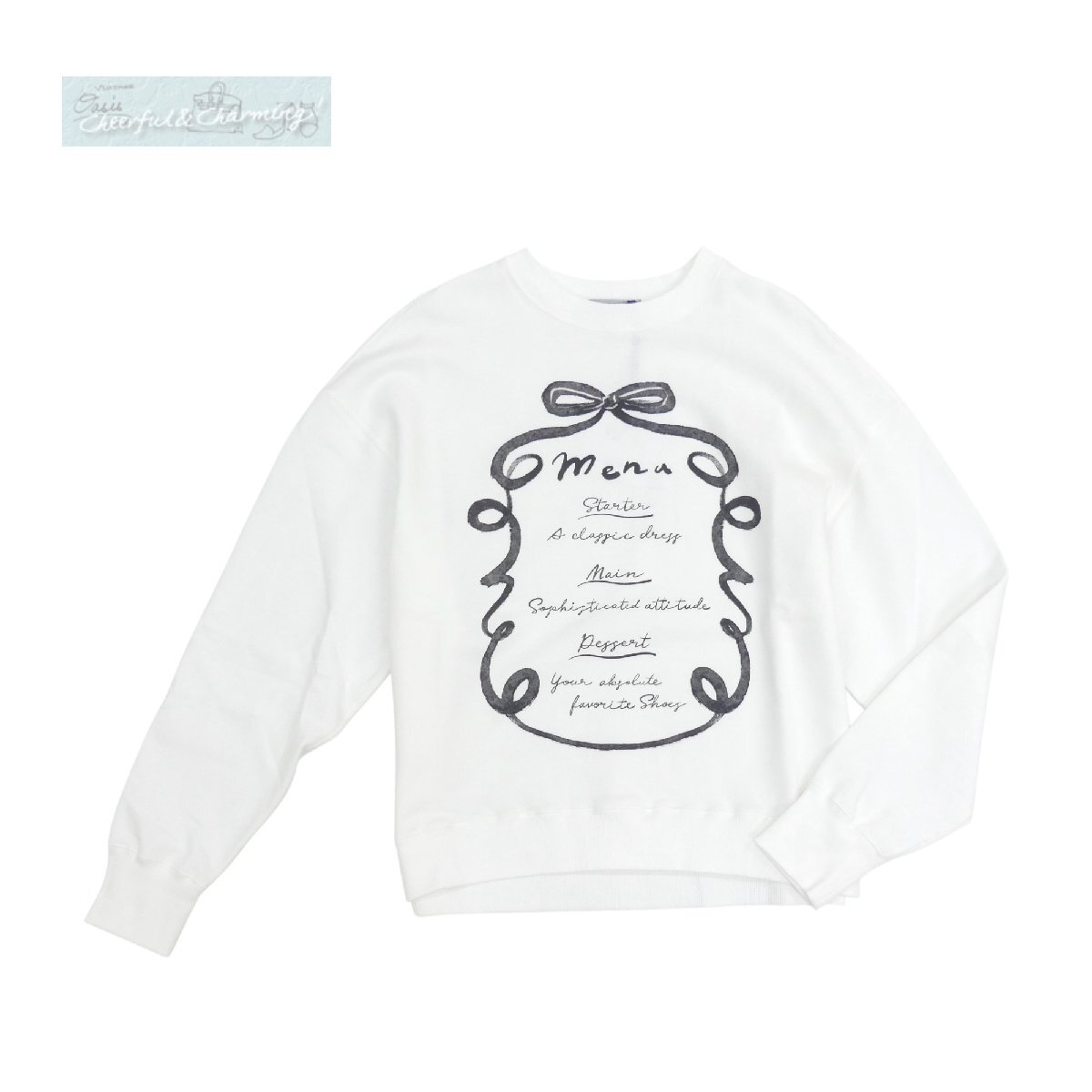 未使用 SEVEN TEN by MIHO KAWAHITO セブンテン menuプリントトレーナー S ホワイト×ブラック コットン '25年SS商品 9S105