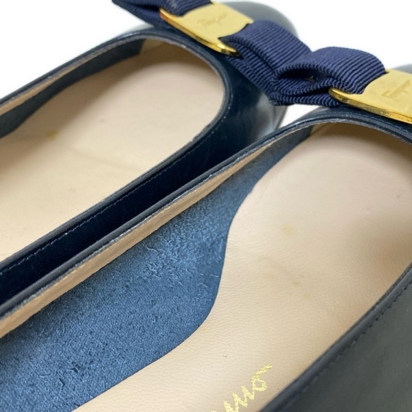 サルバトーレフェラガモ FERRAGAMO/SalvatoreFerragamo パンプス 6c - レザー ネイビー×ゴールド レディース ヴァラリボン 靴