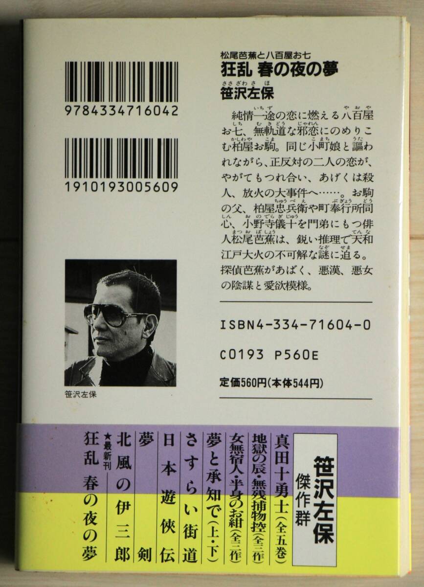 Product name: 狂乱 春の夜の夢 松尾芭蕉と八百屋お七・玄白歌麿捕物帳 2冊セット 笹沢佐保 光文社文庫 帯付き