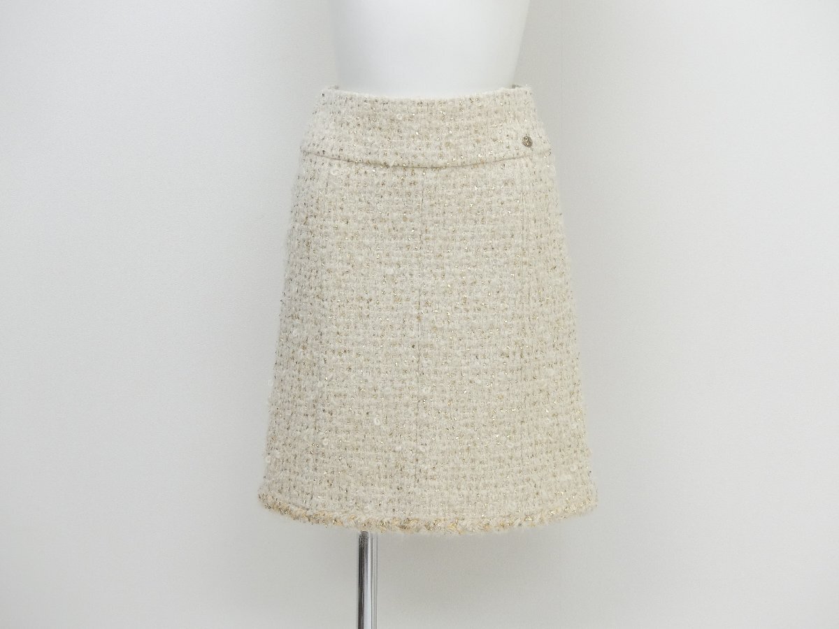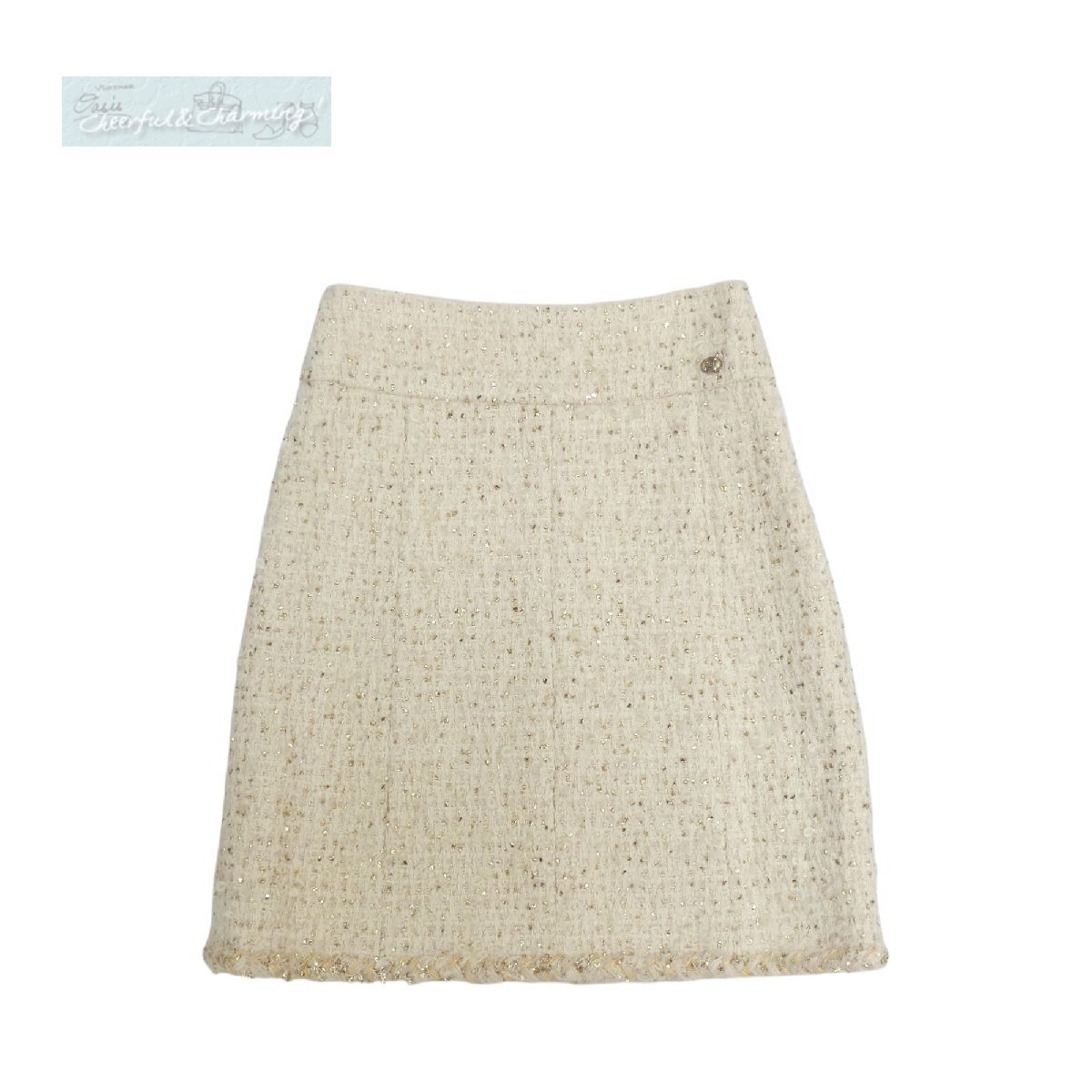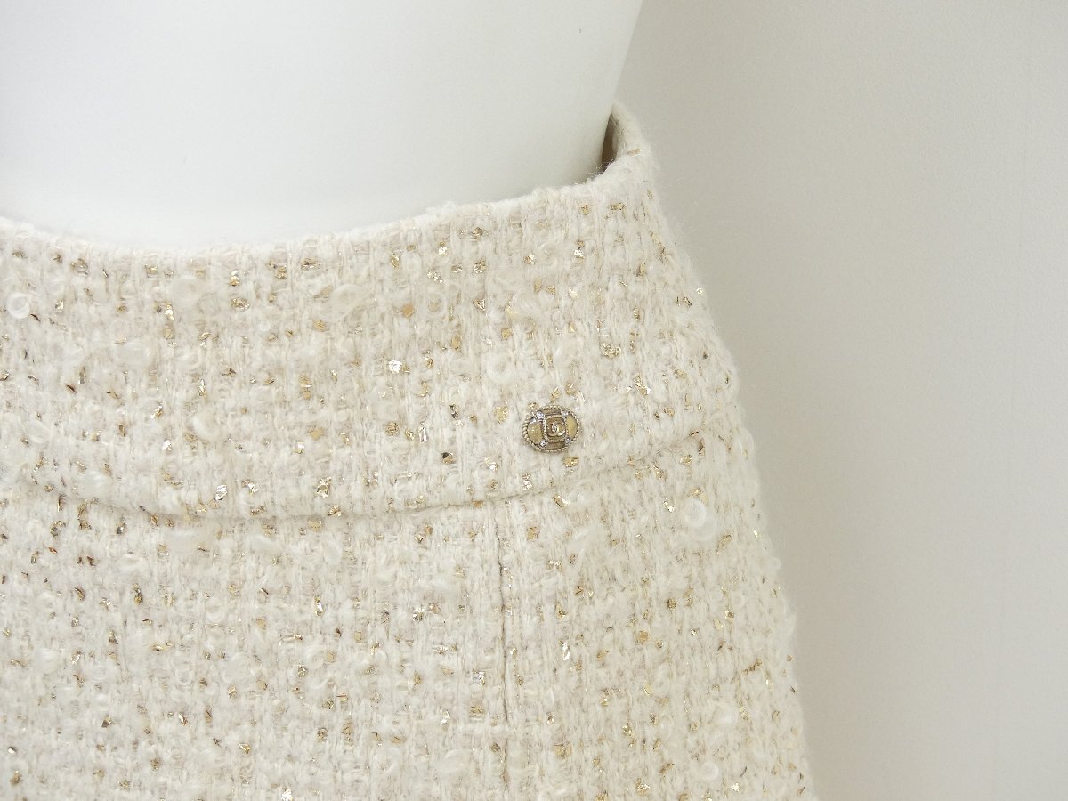 Sランク CHANEL ツイードスカート 34 エクリュ/ゴールド 19A 国内購入 P61916