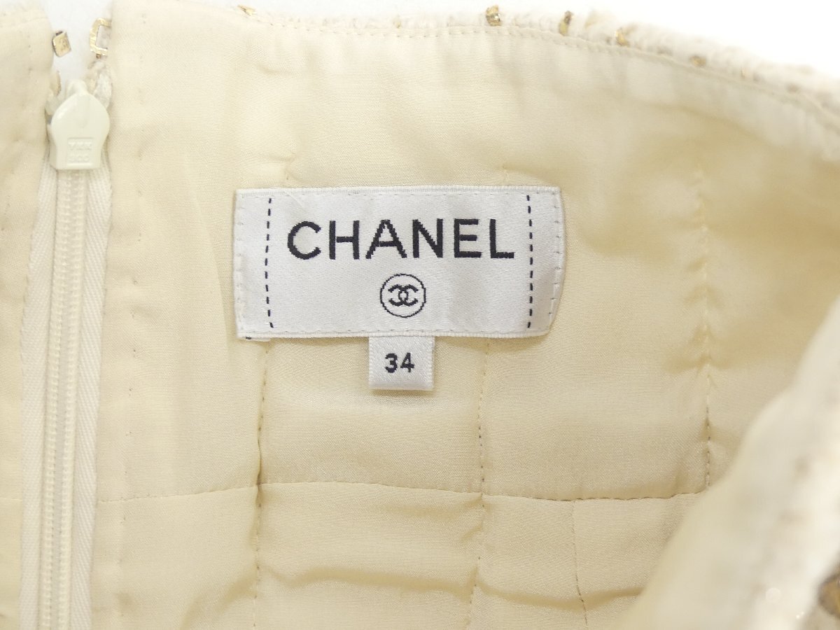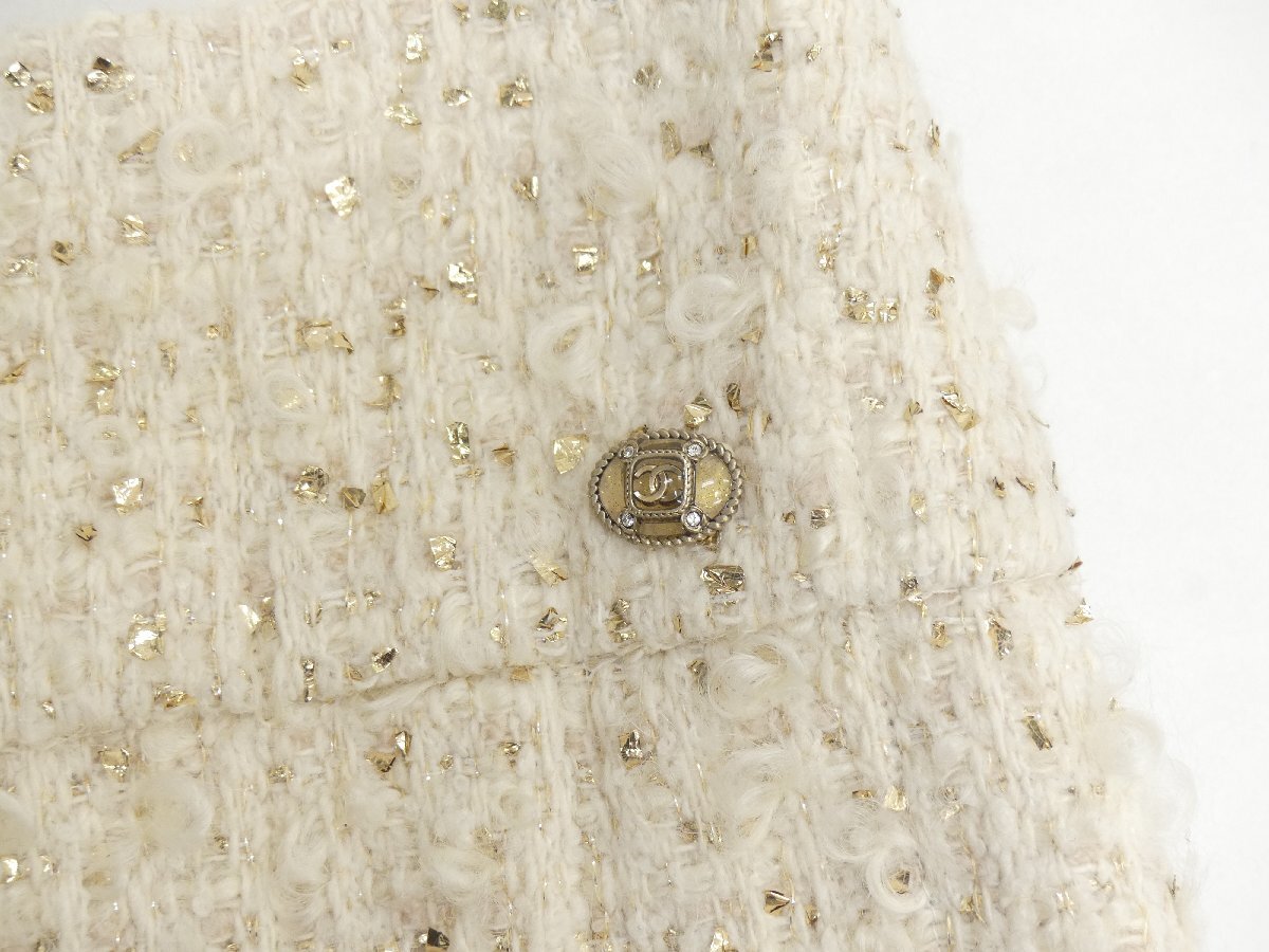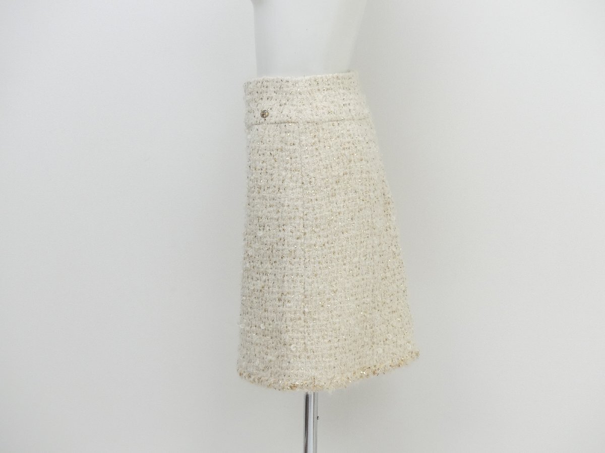 Sランク CHANEL ツイードスカート 34 エクリュ/ゴールド 19A 国内購入 P61916