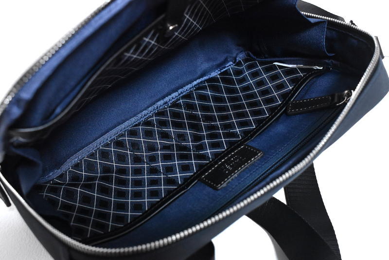 本体には、突然の雨でも安心な超撥水テフロン加工のポリエステル300Dをグログラン織りで仕上げた素材を使用。