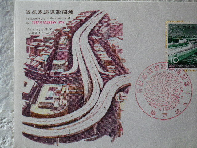 FDC 首都高速道路開通 1964年 2貼2消 東京・日本橋印 解説書有 ncc版●29●同梱大歓迎