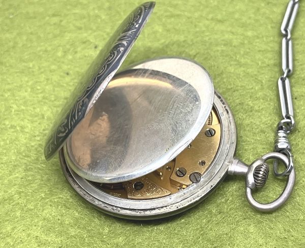 Product name: ☆アンティーク 骨董/銀製/銀象嵌装飾の懐中時計 HAAS NEVEUX/可動品 1900年代製造 チェーン付き