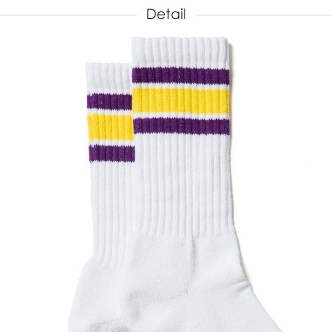 Product name: 【アンビル】新品未使用 USコットン ライン クルーソックス パープル×イエロー 1足