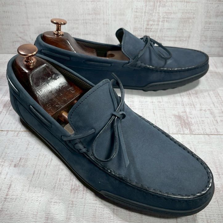 【美品】▼LOBB'S by CALO▼ロブス 25.0cm(表記40)デッキシューズ 紺色 ネイビー ヌバック メンズ 革靴 靴 レザー 中古 宅急便 即決