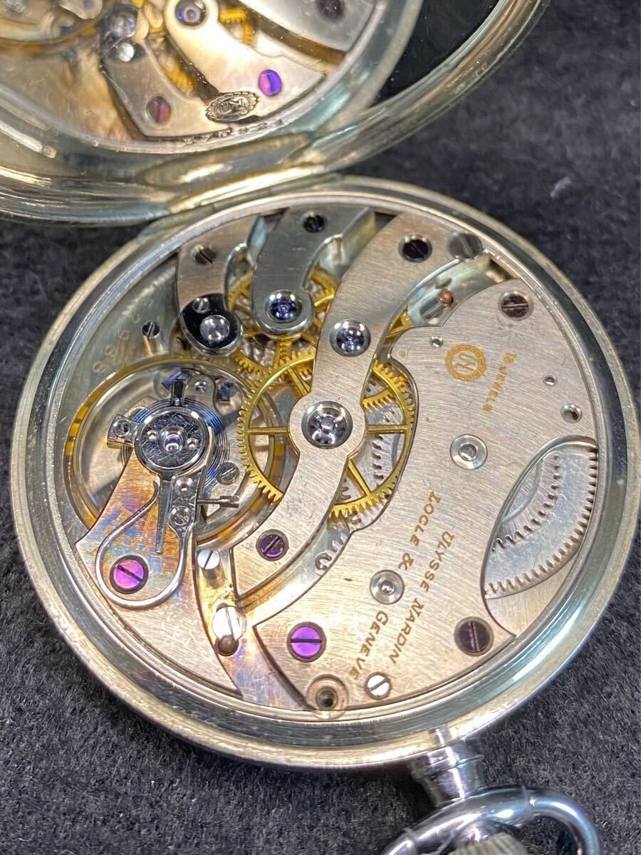 ユリスナルダン 18石 稼働中 サファイア穴石 箱付き ULYSSE NARDIN スイス製 懐中時計 手巻き スモセコ 白文字盤