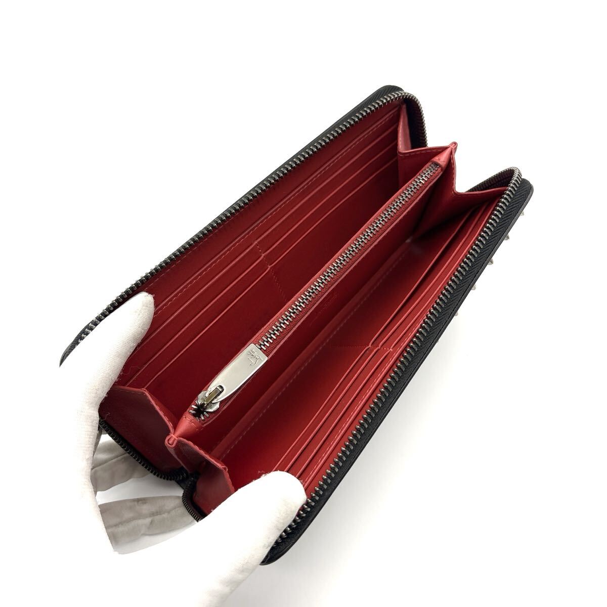 Product name: 未使用級◆Christian Louboutin クリスチャンルブタン 長財布 ロングウォレット スパイク スタッズ パネトーネ ブラック レッド メンズ