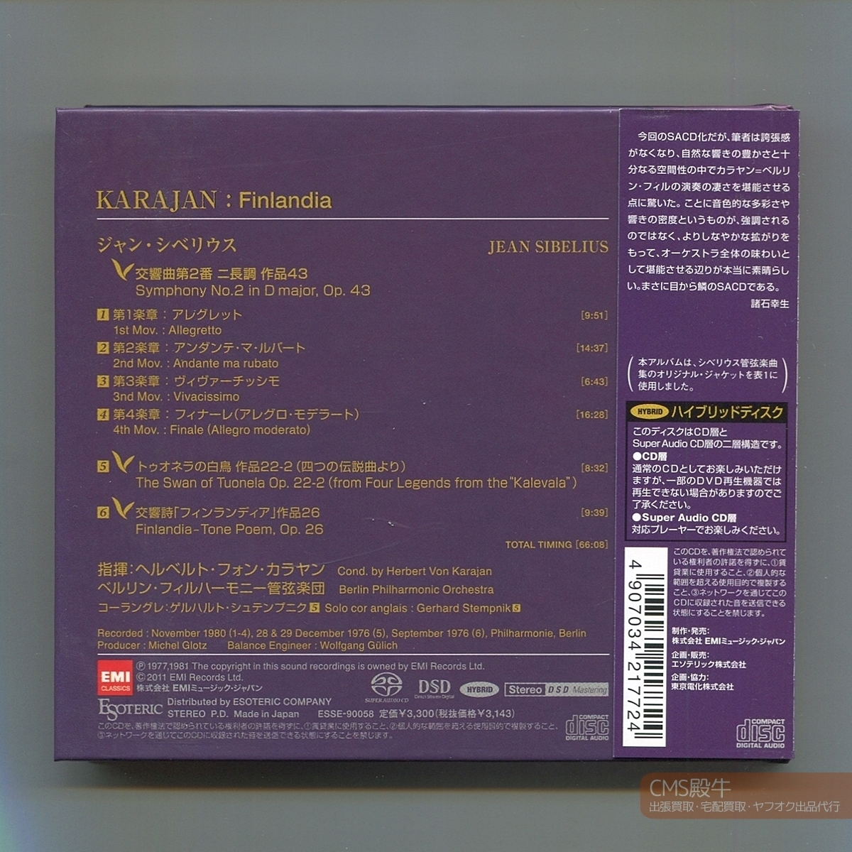 Product name: CIS2508-051>ESOTERIC□カラヤン&ベルリンpo/シベリウス:交響曲 第2番 1980年録音(Hybrid SACD)