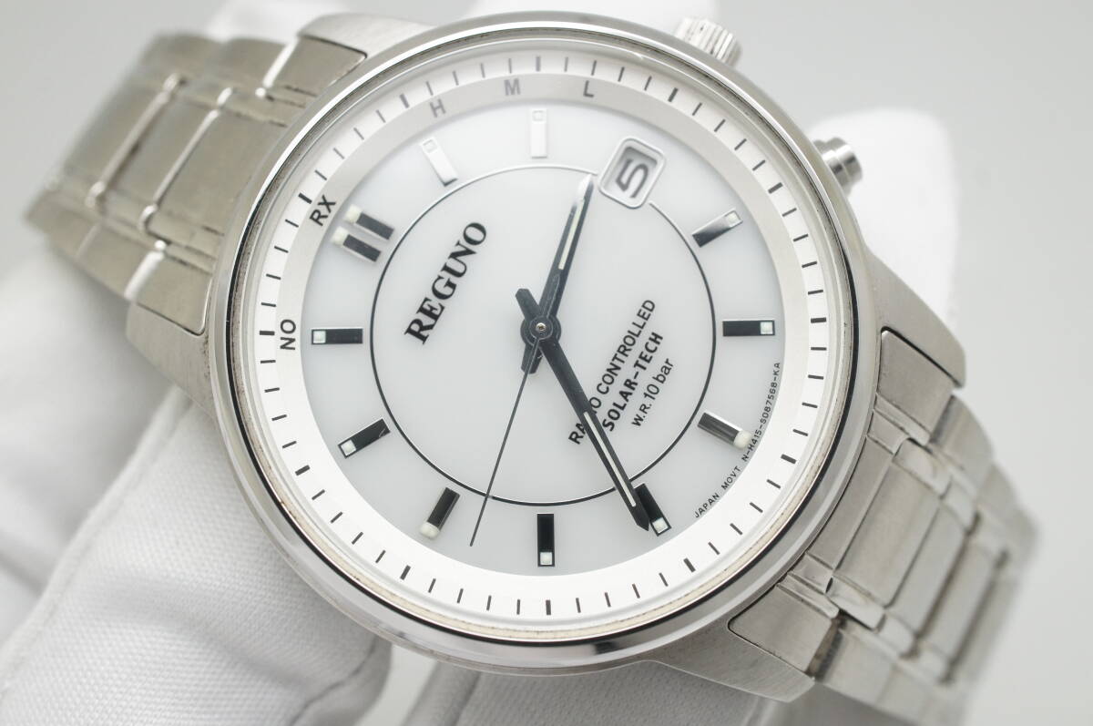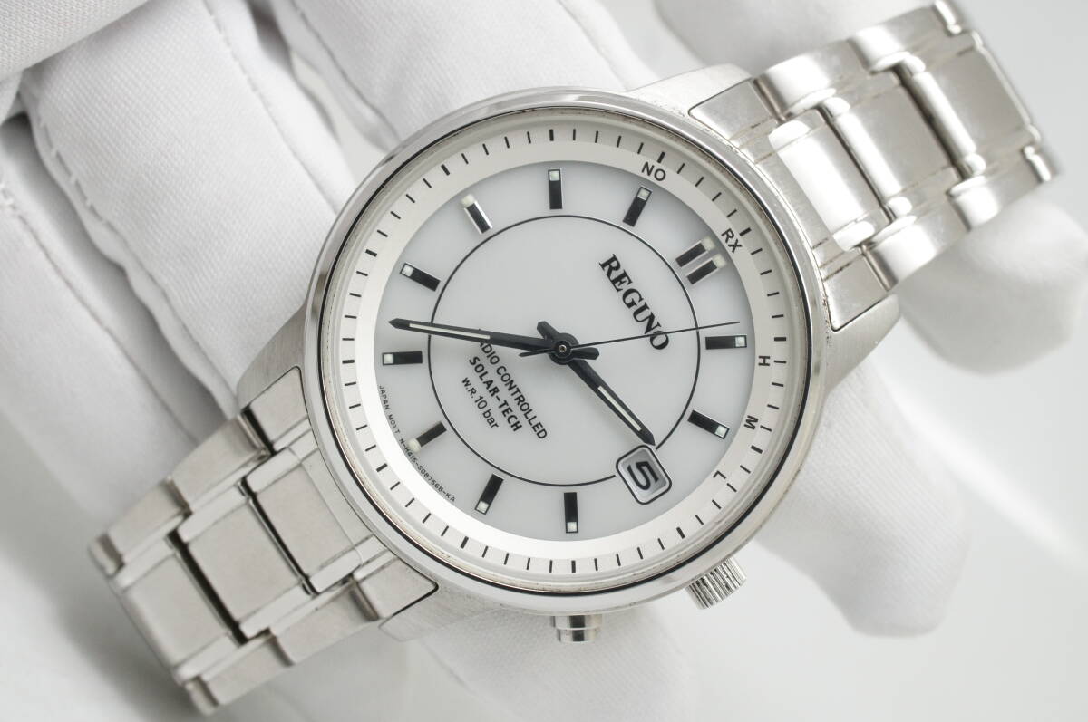Product name: W39●作動良好 美品 CITIZEN シチズン REGUNO レグノ 電波ソーラー H415-S057523 白文字盤 デイト メンズ腕時計 シルバー お洒落 クォーツ