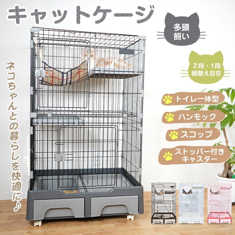 Product name: キャットケージ 大型 3段 キャスター ロック トイレ 収納 多機能 広々スペース 猫 うさぎ 小動物 ペット ハンモック はしご 通気性 pt072