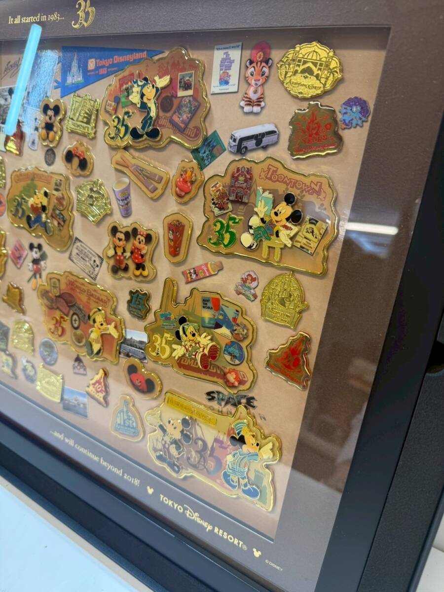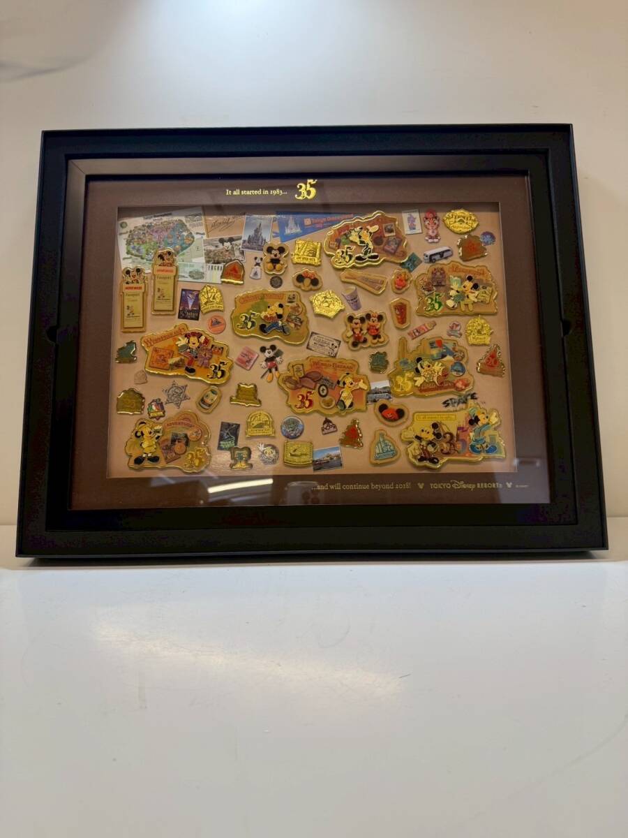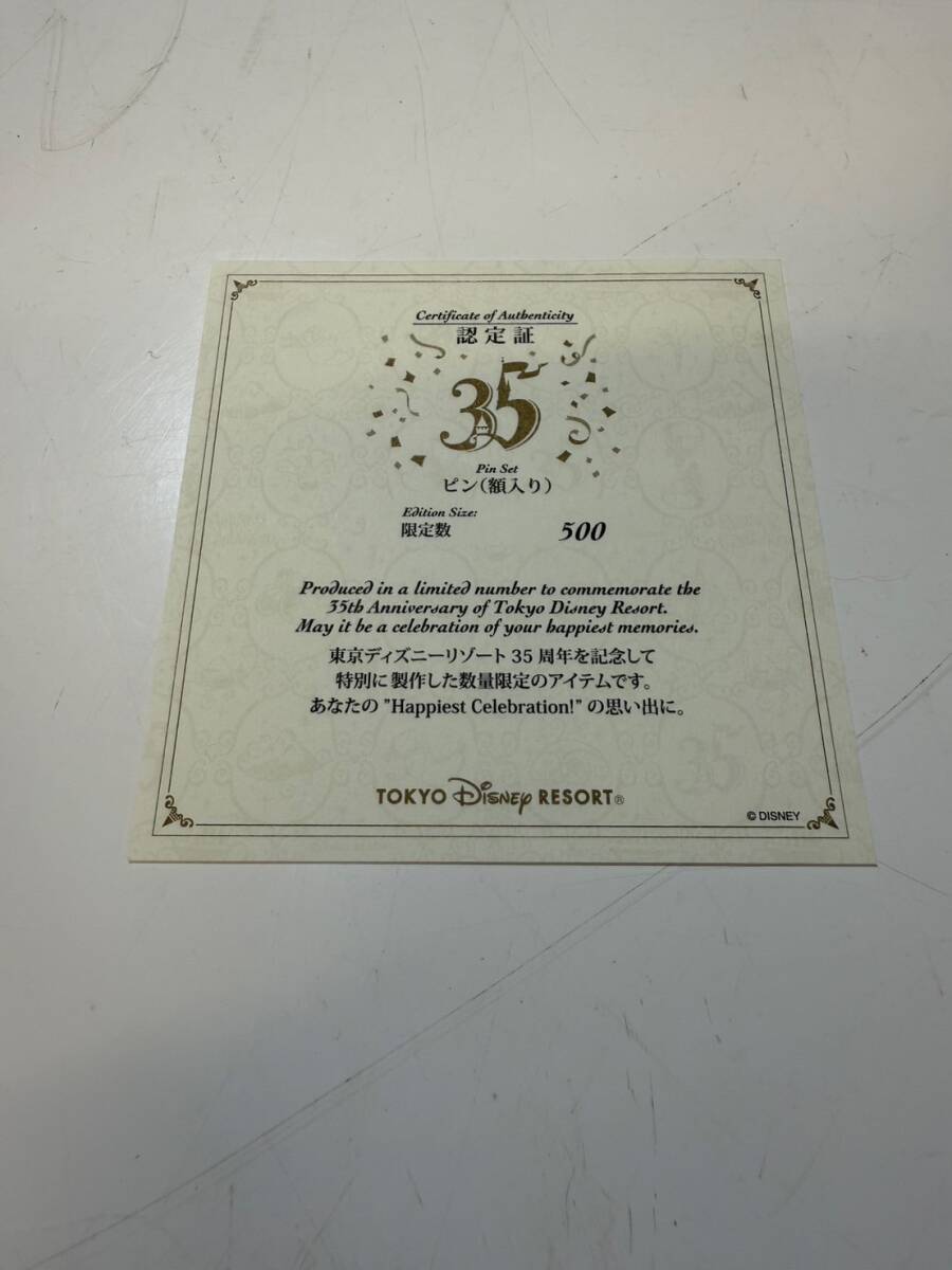 【中古品】東京ディズニリゾート 35周年 ハピエストセレブレーション ピンバッジ 額入り 認定証 元箱付き