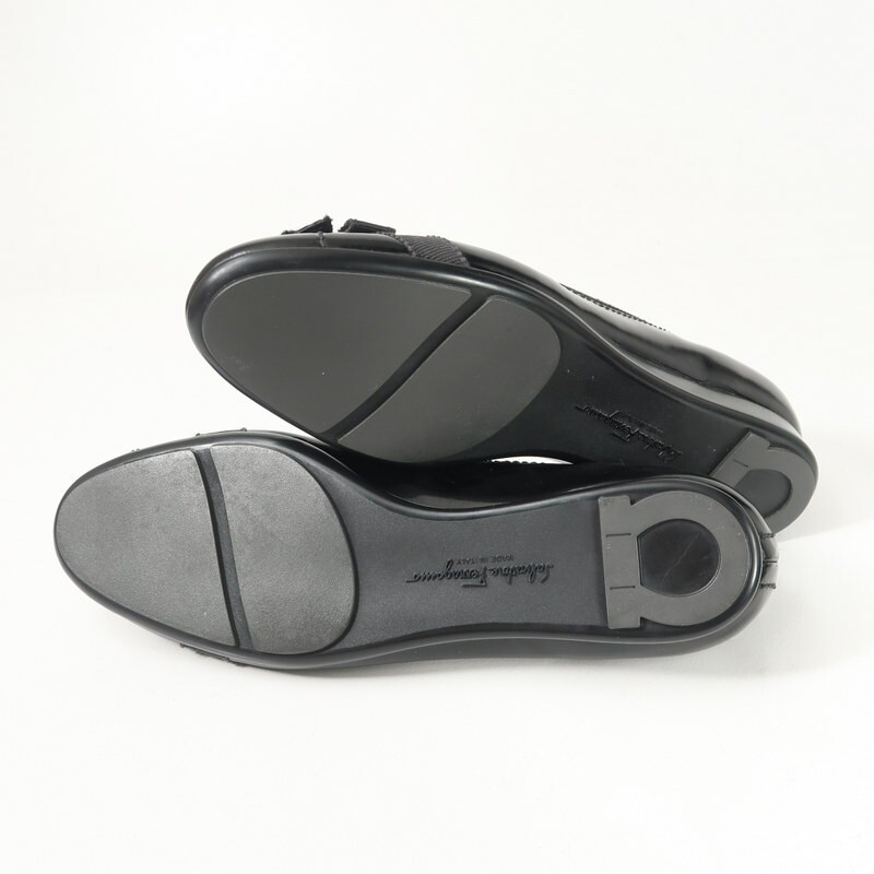 Product name: GR9358*イタリア製 サルヴァトーレフェラガモ 6C(23cm相当) パテントレザー グログランリボン バレエシューズ パンプス 靴 ブラック
