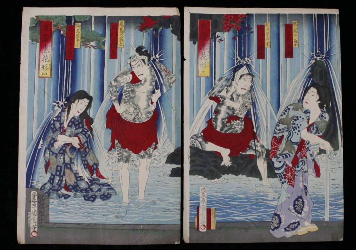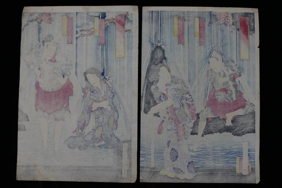 Product name: 【真作】 浮世絵 豊原国周 木版画 『有瀧恵花形 1~5』 5枚セット 37×25cm(1枚当たり) 03404083-39