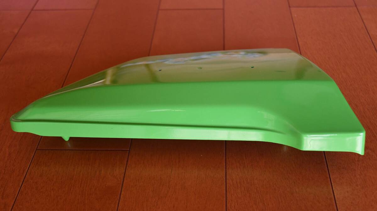 ・かなり以前に、オークションで手に入れ、予備で持っていたものです。ツメが1ヵ所折れていましたので、補修し、塗装業者さんに再塗装していただきました。ライムグリーンに塗装、表面はクリアーを吹いています。