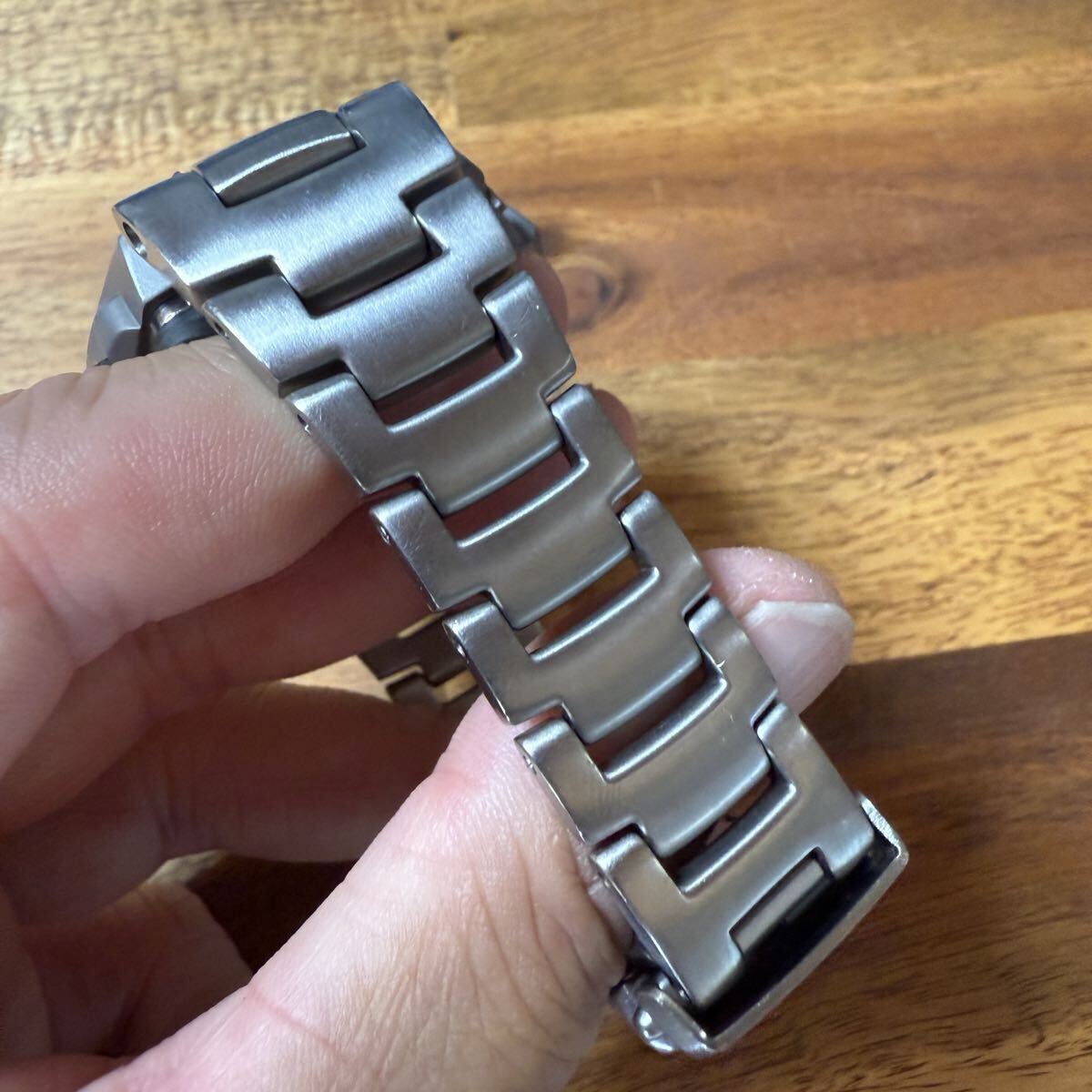 外観、ベゼル周りは清掃したので比較的綺麗です。大きなガリ傷やえぐれはありません。細かいスレ傷はありますが、チタンの素地なので、磨きこめばきれいにできるかと思います。画像で状態を確認してください。
