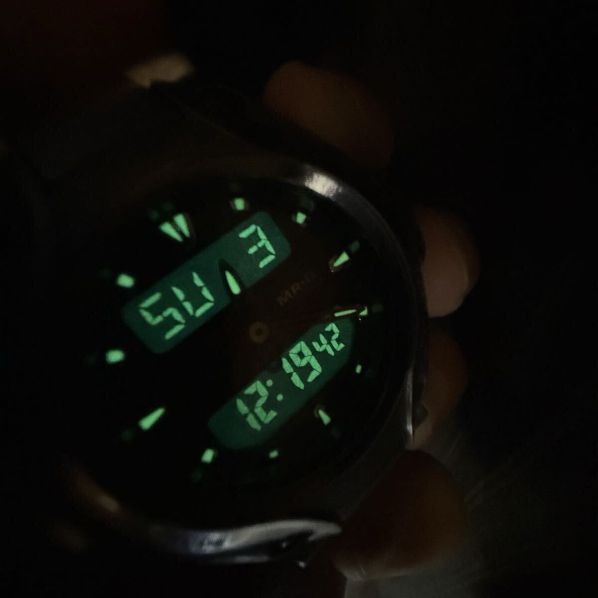 時計の機能ですが、特に問題なく作動しています。時刻合わせやバックライトの点灯も問題ありませんでした。古いモデルなので、液晶が暗くなってきている個体が増えてきているモデルですが、この個体は、液晶が暗くなって来tリル感じはせず比較的くっきりとした表示されています。バックライトもしっかりと点灯するので、機械的な状態も悪くないと思います。