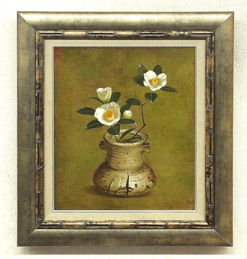 Product name: 【GLC】九鬼三郎 「重文古伊賀に椿」 油彩8号共シール 伊シエナ美術館日伊美術教授 リアリズム 百貨店個展多 ◆逸品!