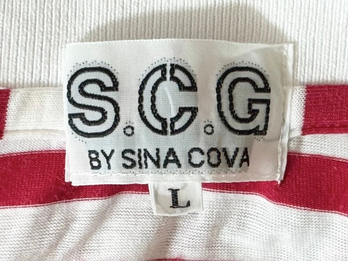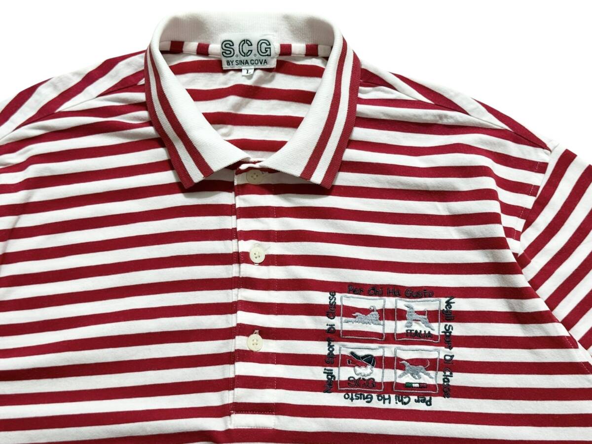 SCG BY SINACOVA エスシージー バイ シナコバ 着心地抜群 ストレッチ ボーダー柄 プルオーバー ポロシャツ 半袖 L レッド/ホワイト
