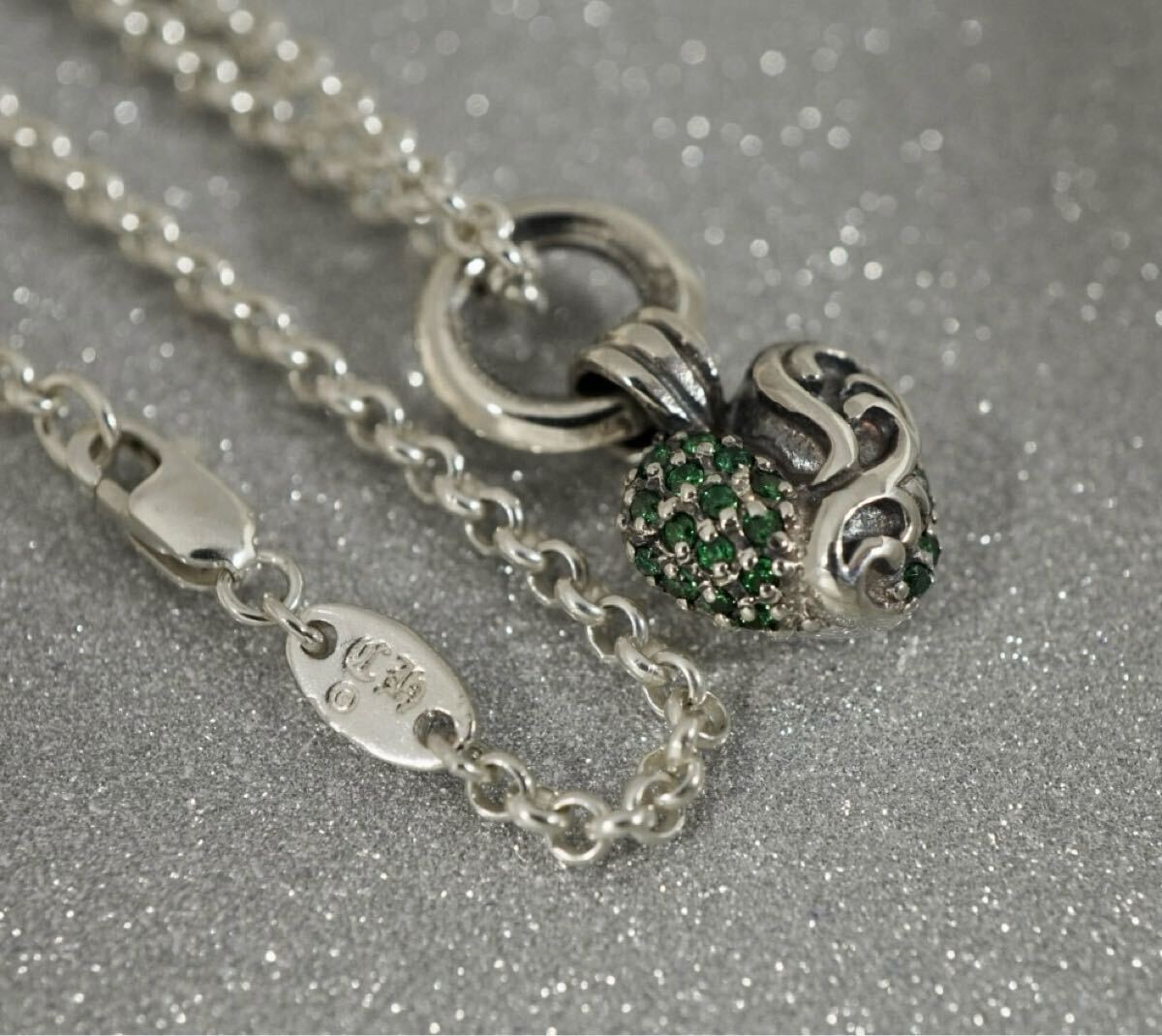 クロムハーツ/ハートチャーム/エメラルドパヴェ/新品加工/ロールチェーン/インボイス/1円から!CHROME HEARTS
