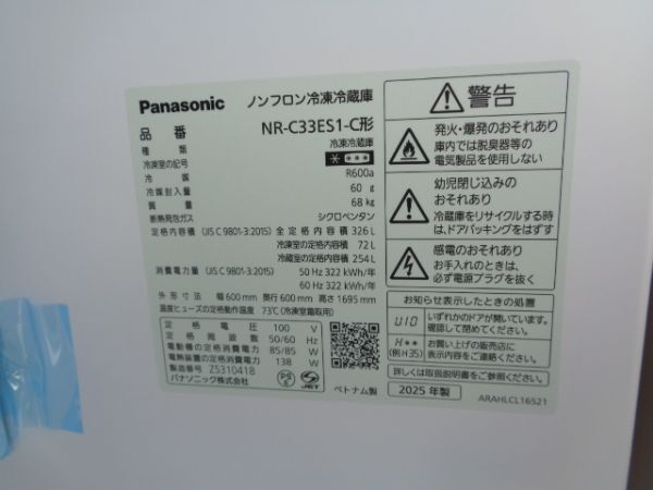 Product name: Panasonic 冷蔵庫 NR-C33ES1-C [マットベージュ]右開き 326L  2025年製【直接引取大歓迎です】鶴見区