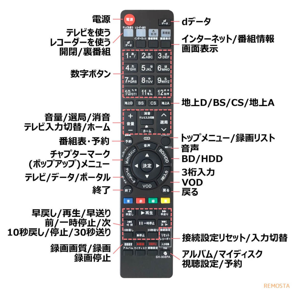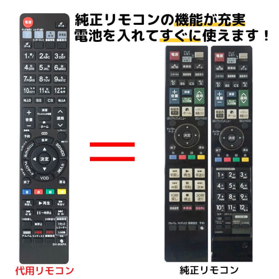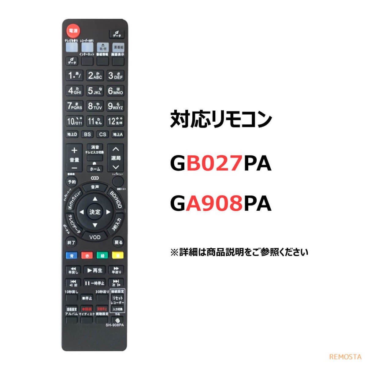 シャープ アクオス ブルーレイ GA908PA GB027PA リモコン BD-HDS63 BD-HDS65 BD-HDW63 BD-HDW65 BD-HW51 SHARP AQUOS レコーダー 代用
