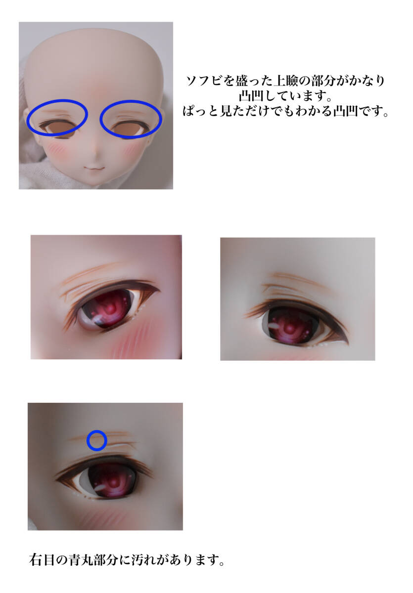 上瞼のソフビ盛りの難は目立つと思いますので気にされない方のみお迎えをご検討いただければと思います。雰囲気を気に入っていただけると嬉しいです。