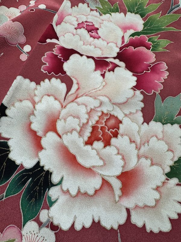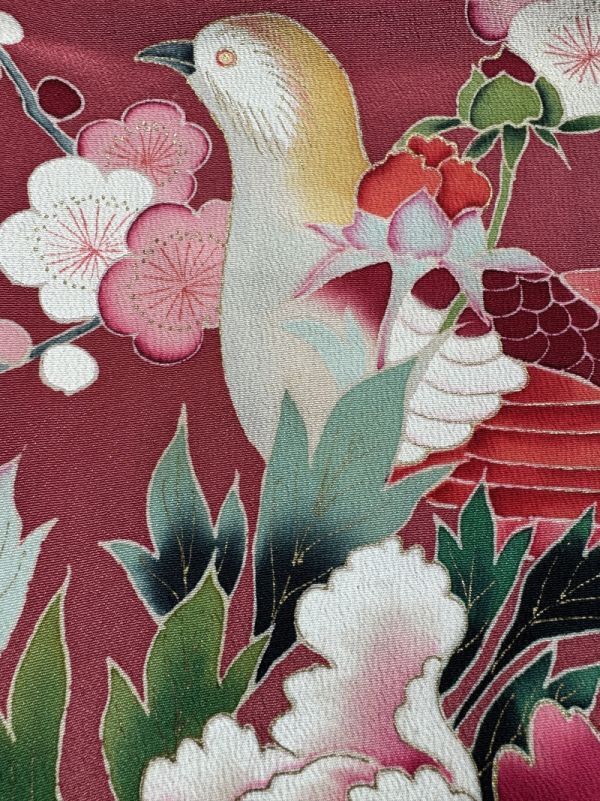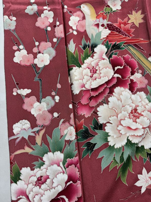 Product name: ★きものさらさ アンティーク着物帯★訪問着 花鳥図 牡丹 正絹 梅 紅葉 大正ロマン ピンク系 古布 古裂 時代裂