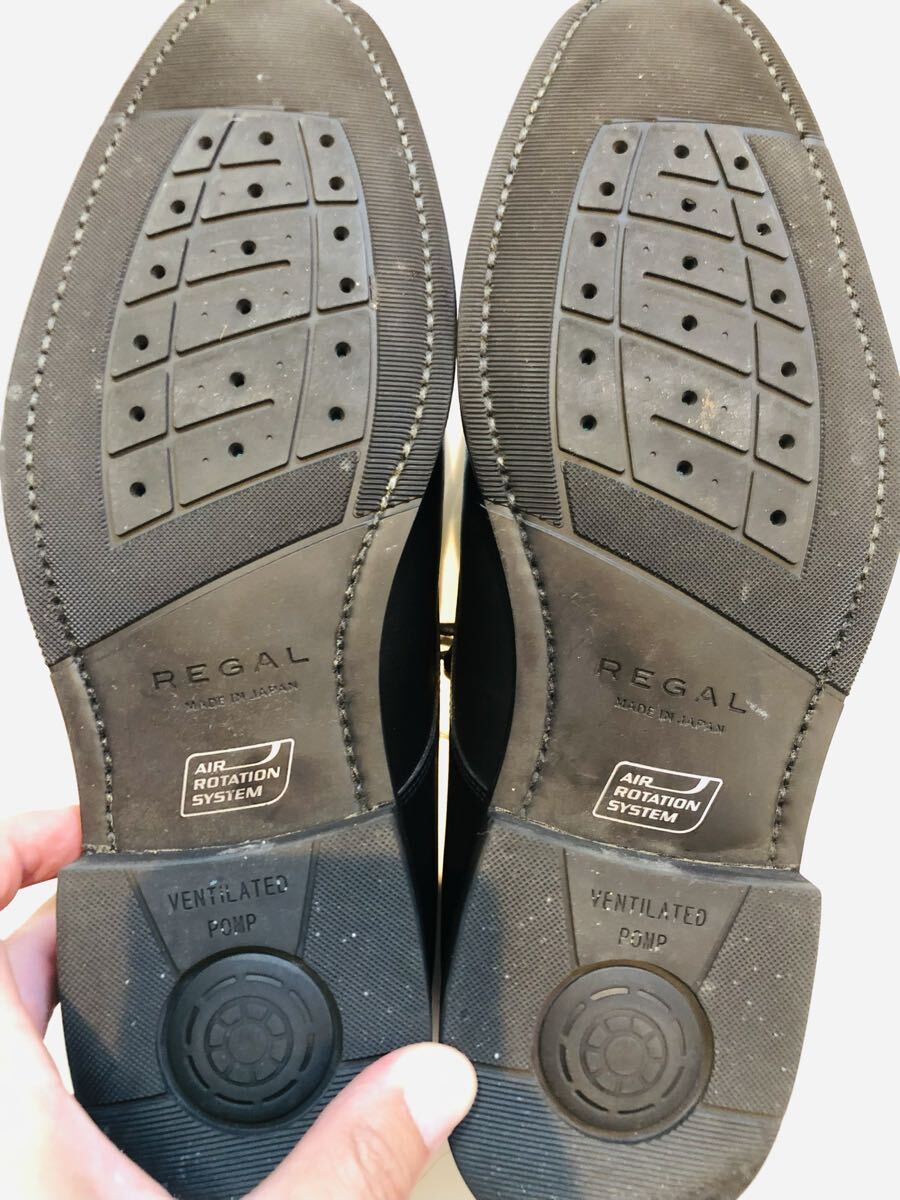 どんなシーンでも対応できるブラックのリーガルになります。機能性を最大限に活かしたソールデザイン。 独自開発のエアローテーションシステムは、歩行から生まれる空気を循環させ、快適な履き心地を実現した機能。 ソールにエアホールを取り入れることで透湿性をプラス。 より一層進化した履き心地を実現しました。リーガルコーポレーションが独自開発した「エアローテーションシステム」歩行から生まれるエネルギーを利用して、空気を靴内に送り込み循環させます。 クッション性のよい柔らかなソール、通気性に優れた中物構造により、快適な履き心地を実現させています。エアローテーションシステムの基盤となり、クッション性に定評のある「ベンチレイテッドポンプ」を使用。吸湿性と耐久性に優れた豚中底に通気口をあけ、中ものに柔らかく通気性のよい「キュービックアイ」を搭載。2007年登場し、定番品として愛されてきた木型を復刻。 長年足元を支えてきた木型に、アップデートした仕様、現代的なデザインを載せることで、これからのさらなる活躍を願ったアイテムです。艶感が程よい国産の吟付きレザーを採用しました。足当たりやわらかく、通気性も良い革で、エアローテーションシステムとの相性も抜群です。一足は持っておきたいですね♪