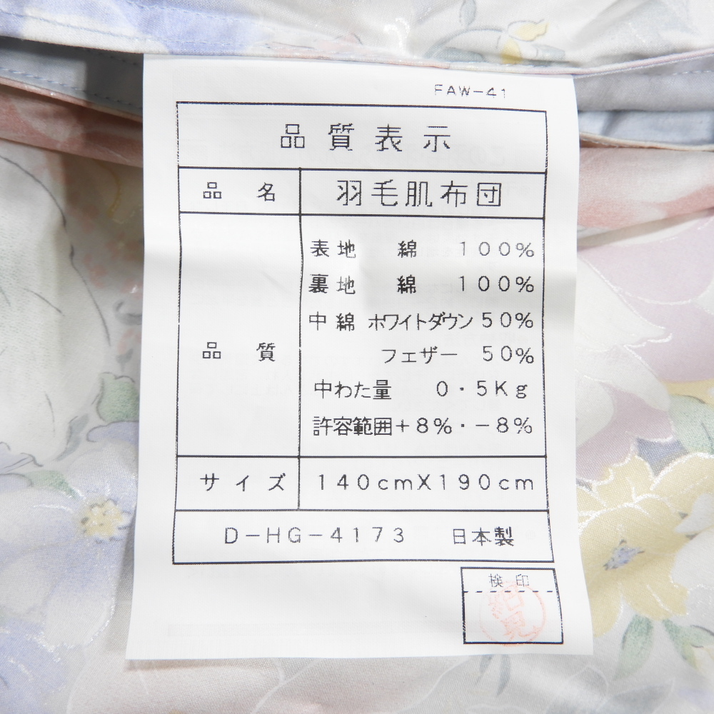 Product name: Elegance Collection 羽毛肌掛け布団 日本製 フェザー 寝具 インテリア 衣類 花柄 エレガンスコレクション