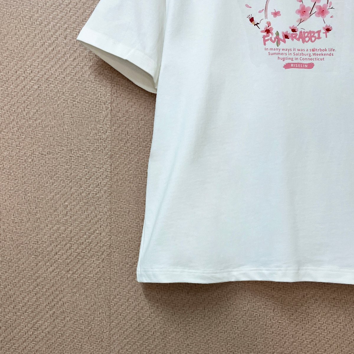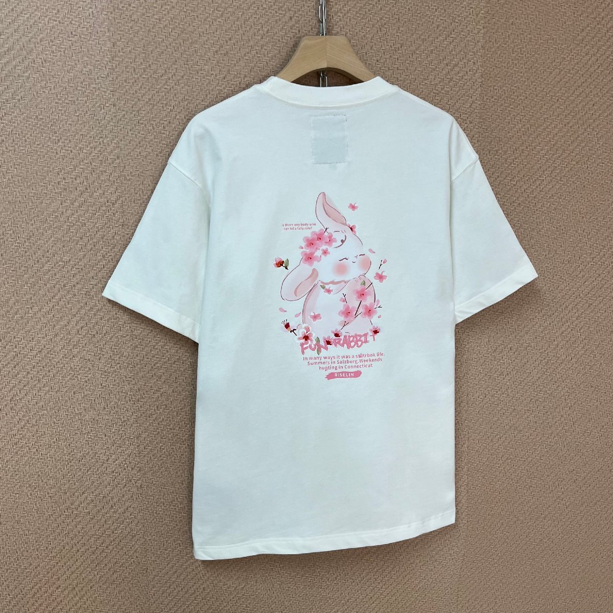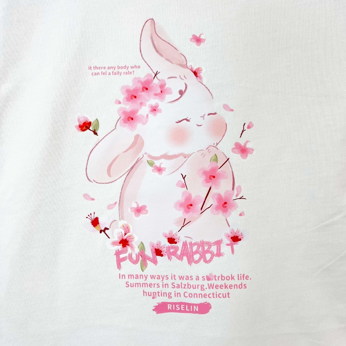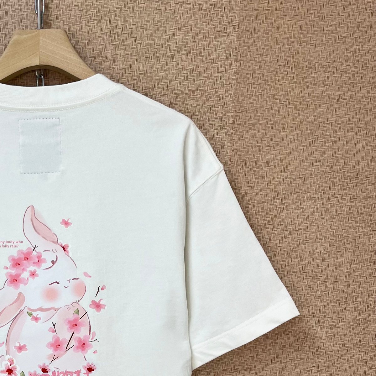 Product name: 逸品 ヨーロッパ製※定価2万◆ブルガリア発※RISELIN 半袖 Tシャツ エジプト綿100% 柔らか ウサギ柄 花柄 可愛い カットソー 日常 夏 M/46