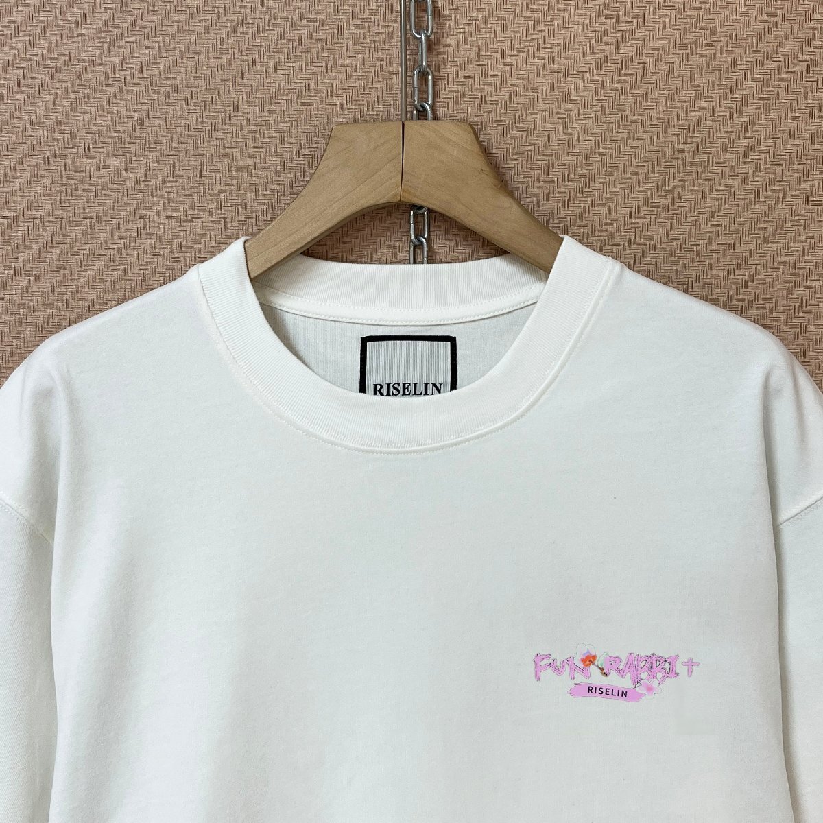 フロントには、優しいタッチで描かれたウサギと花々のプリントを施しました。ほんのり遊び心のあるデザインで、日常に彩りをプラス。ゆったりとしたフォルムにすっきりとしたクルーネックで着やすいのに、一枚で着てもスタイリッシュに仕上がる優れもの。