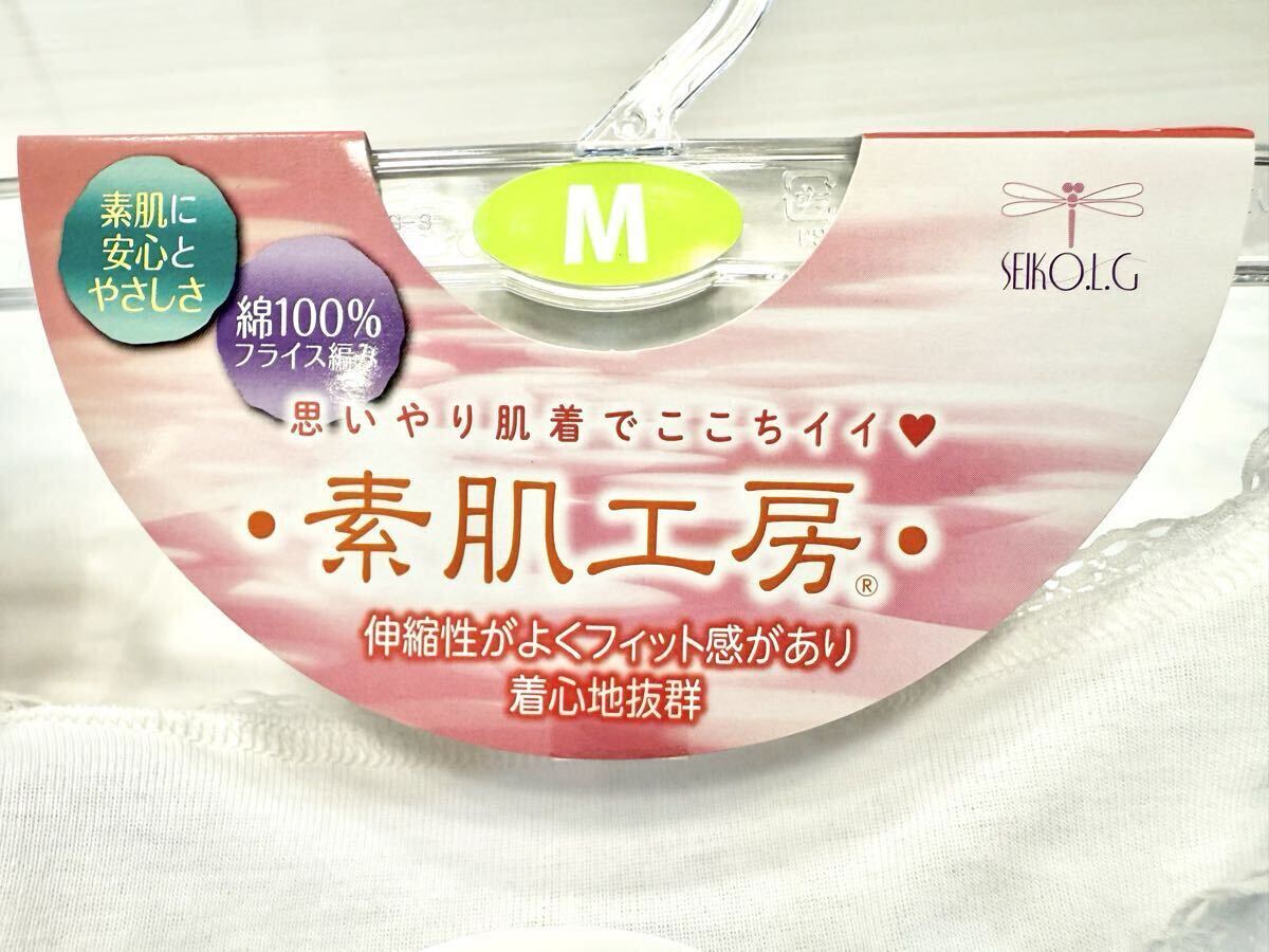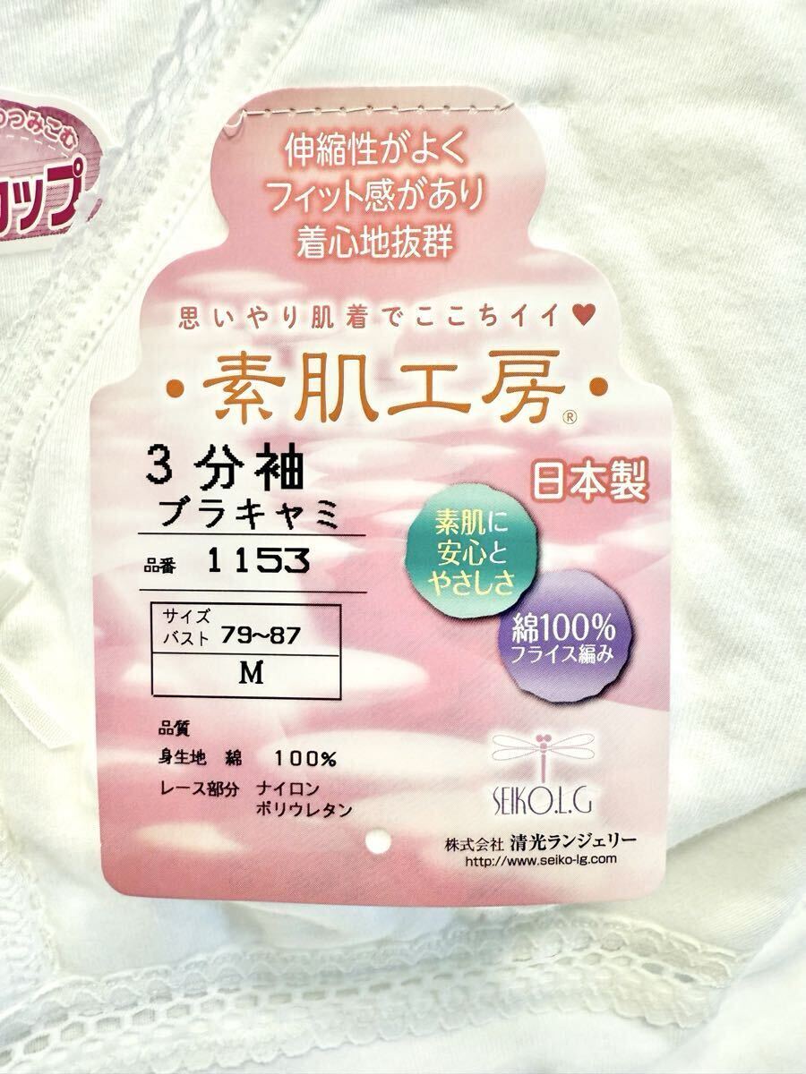 (送料無料)新品未使用品 日本製 SEIKO 清光ランジェリー コットン100% 素肌工房 ソフトカップ 3分袖ブラキャミ☆サイズ Mバスト79〜87
