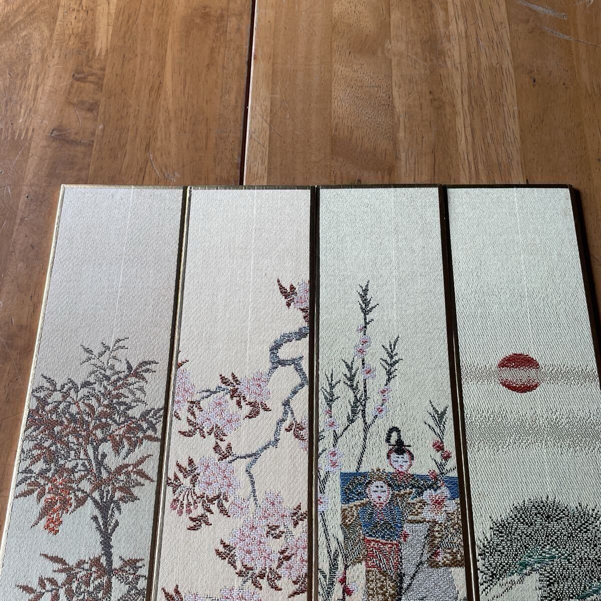 短冊 西陣綾錦織 斎藤宗 南天 桜 桃 日の出 掛軸