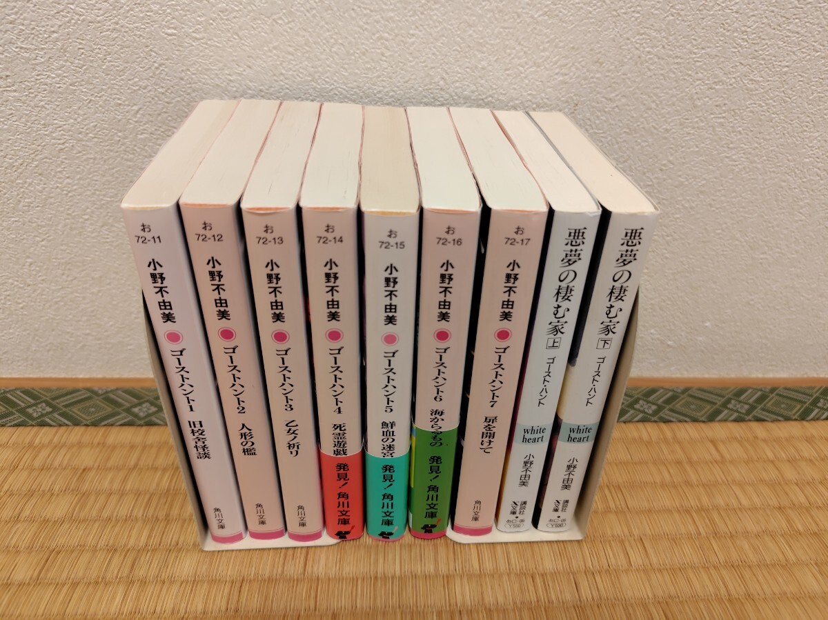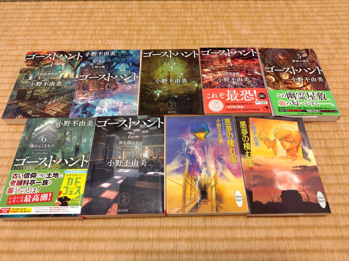 ■小野不由美の「ゴーストハント」全7巻+「悪夢の棲む家 ゴースト・ハント」上下巻の合計9冊です。悪夢の棲む家の上巻の小口に汚れあります(画像5参照)。