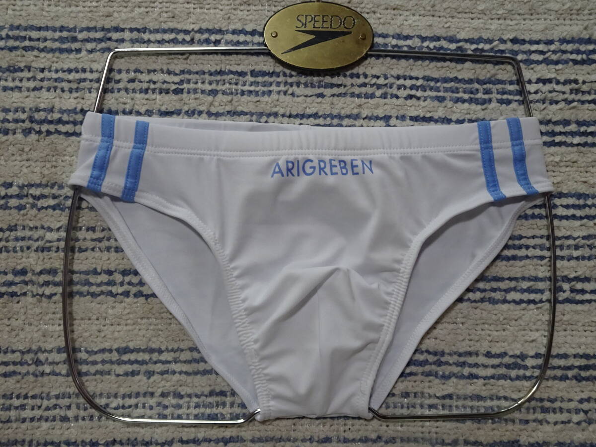 348 L  ARIGREBEN スイムビキニパンツ SizeL ホワイト×サイド サックス2本ライン 新品未使用