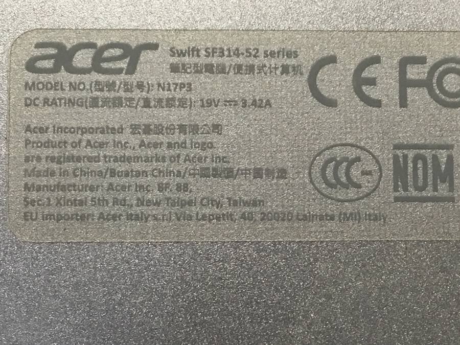 Product name: acer SF314-52-517Z Swift Core i5 8265U 1.60GHz■現状品