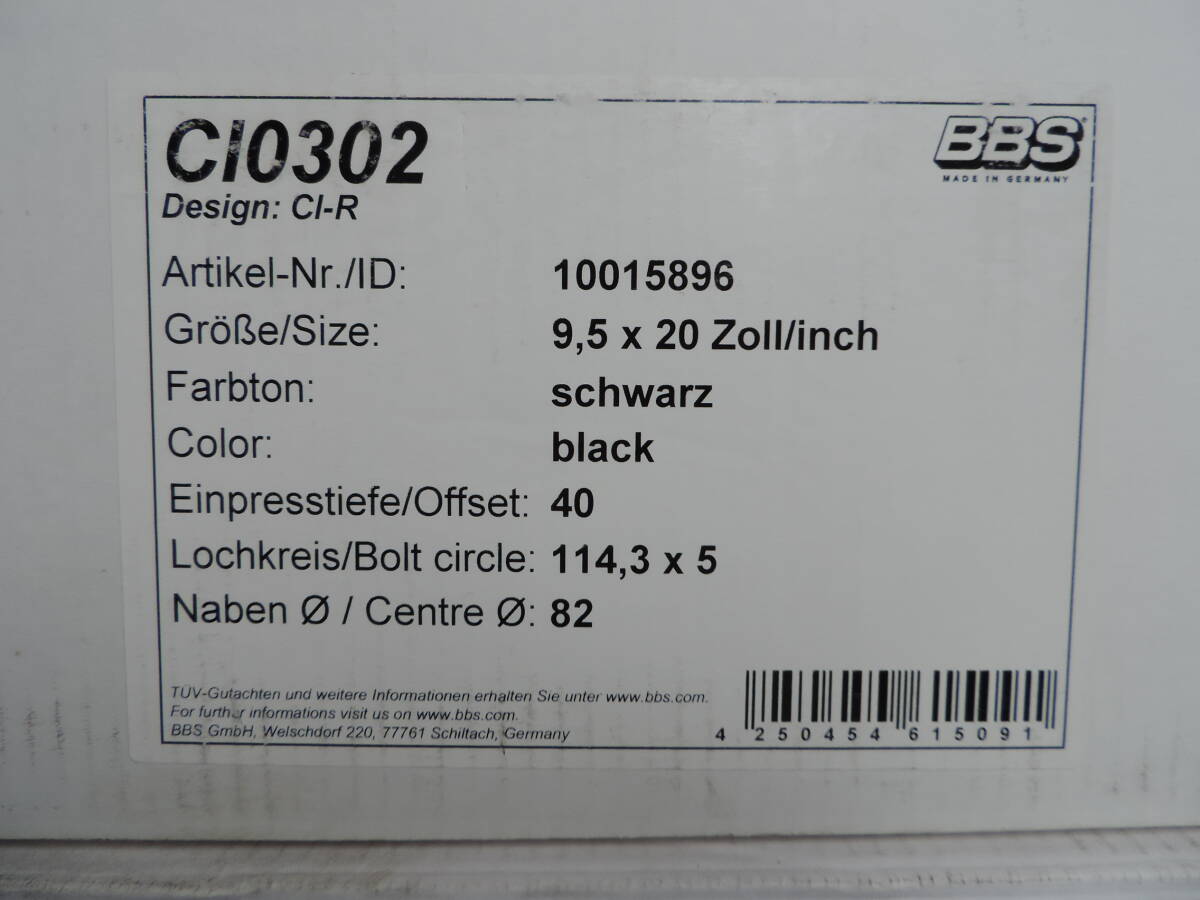 【未使用品】☆処分特価品☆ BBS CI-R サテンブラック 20インチ 9.5J+40 5H114.3 ハブ径 82mm 4本セットの出品となります。