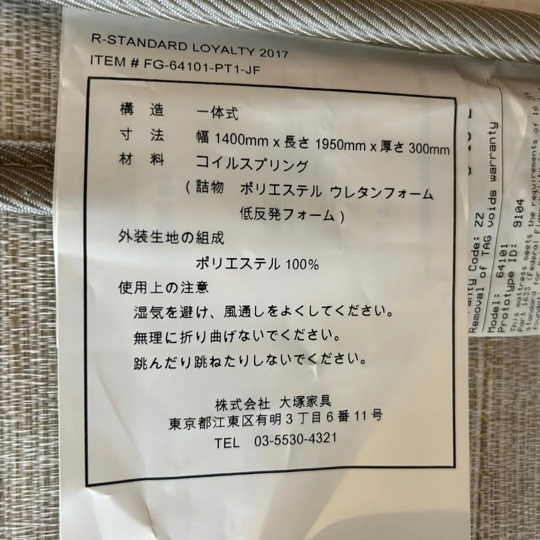 マットレス W138cm D193cm H30cm