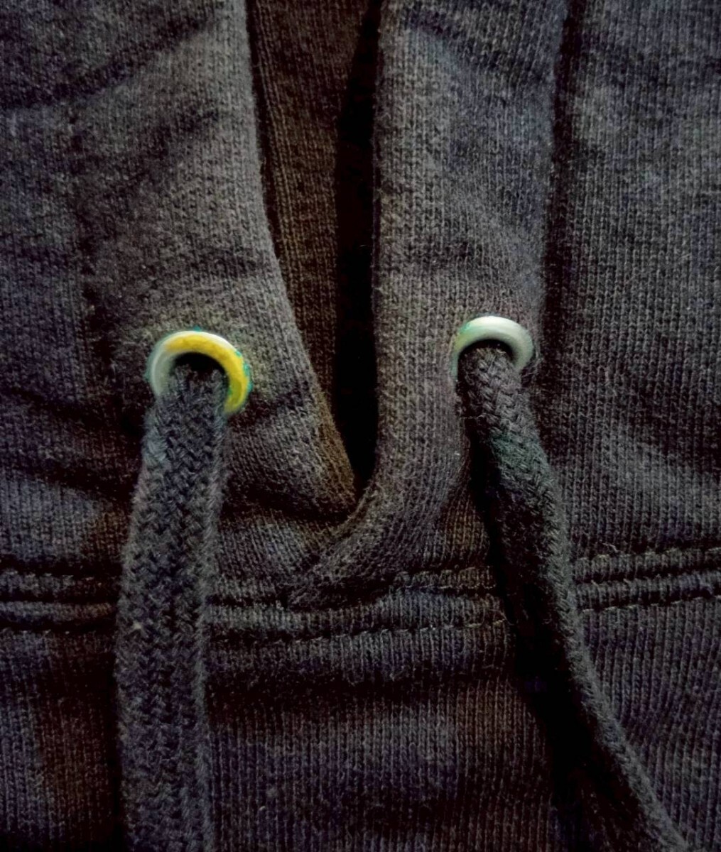 クリーニングて落ちると思いますが、パーカー紐の根元部分の金具に若干青錆があります。