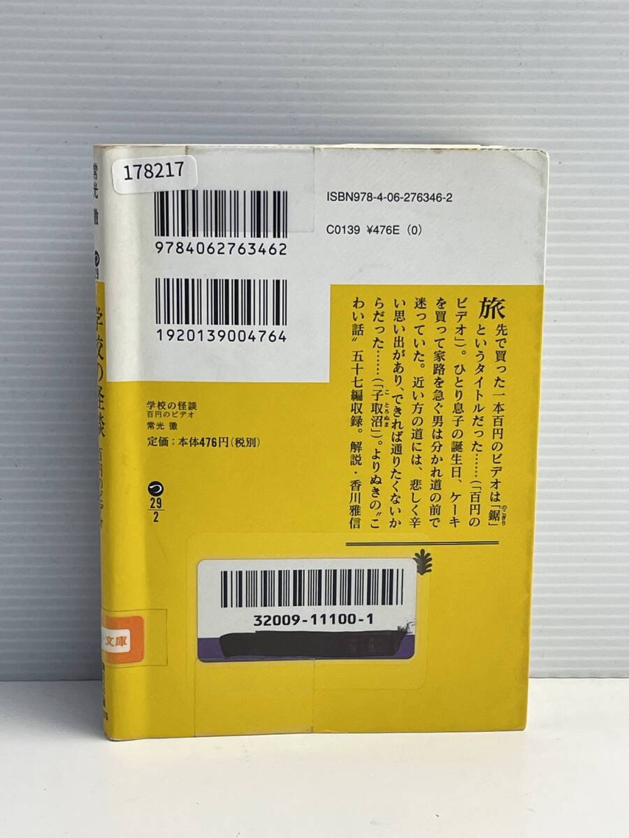 Product name: 学校の怪談 百円のビデオ 講談社文庫常光徹著 平成21年 2009年発行初版【K178217】