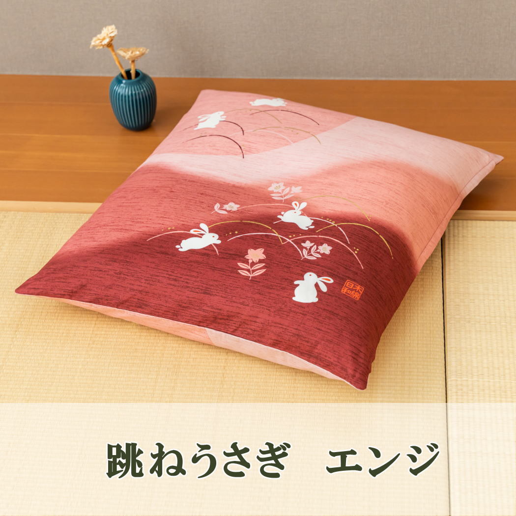 座布団カバー 5枚組 日本製 55×59cm 銘仙判 跳ねうさぎ模様 エンジ日本の伝統美 オシャレ